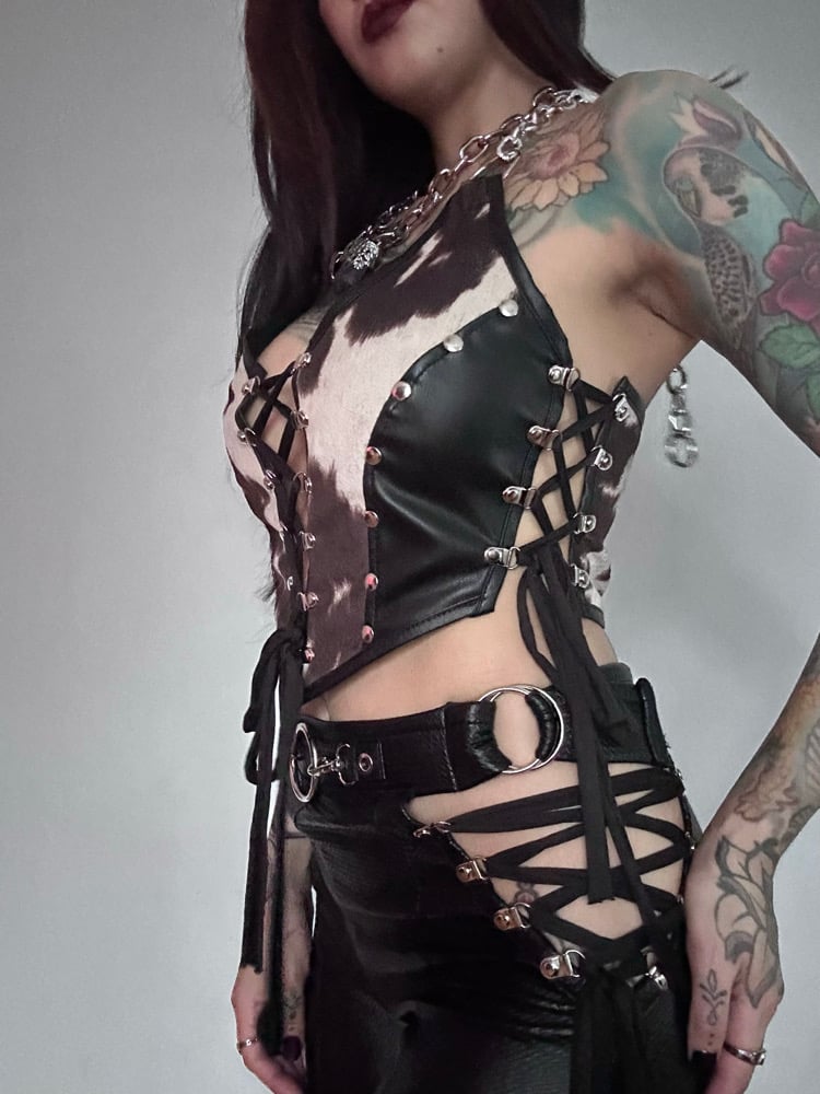 Laces from the front and sides making the top adjustable to fit mutiple bust sizes!